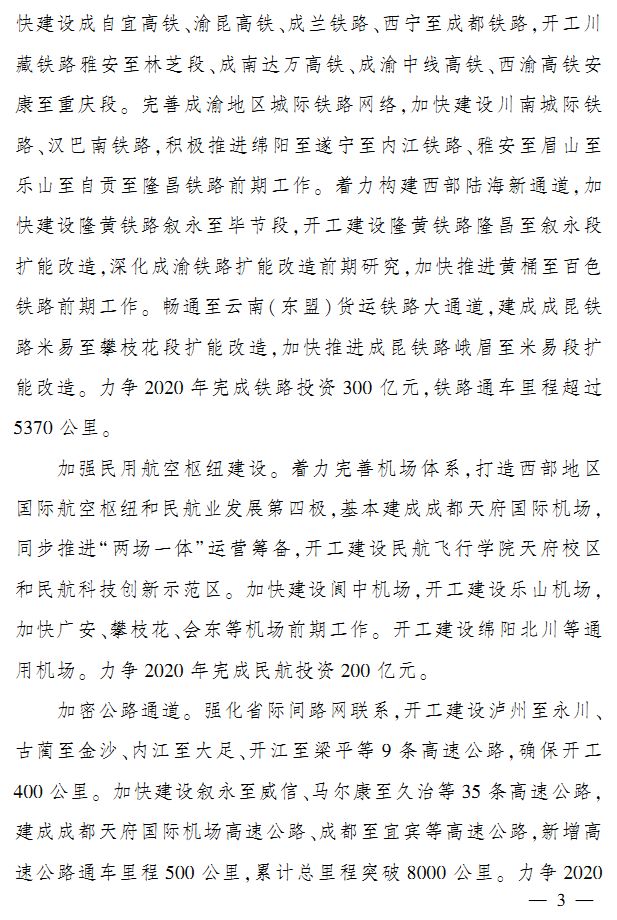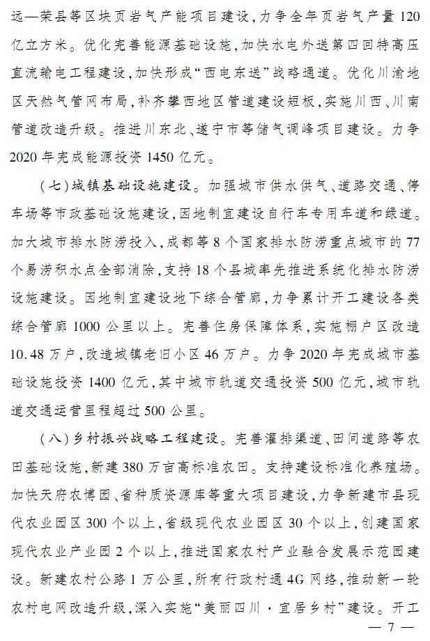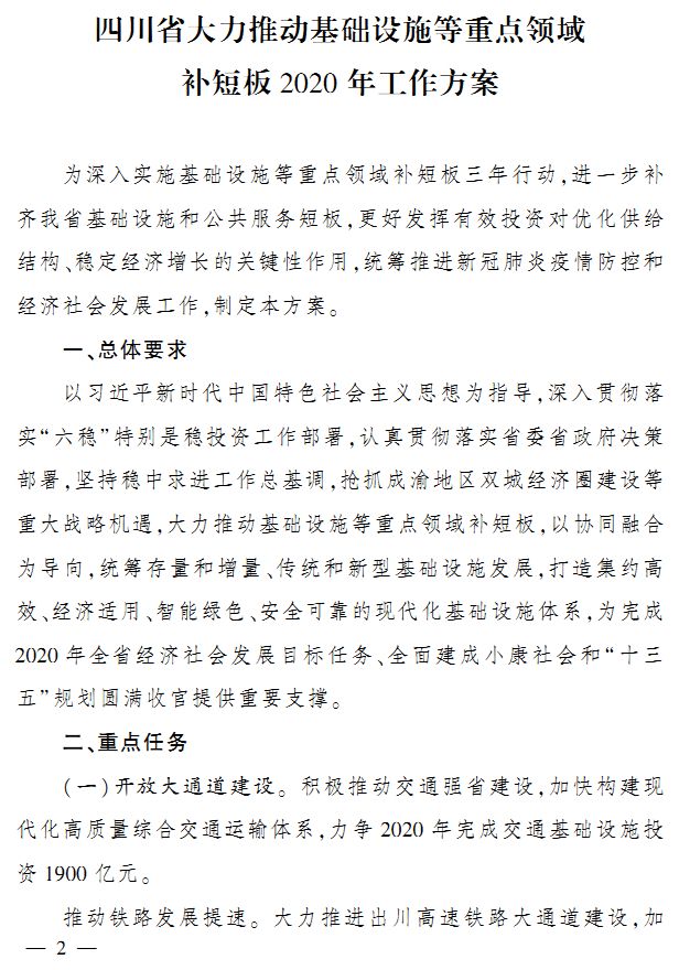 四川省近日印发《四川省大力推动基础设施等重点领域补短板2020年工作方案》。