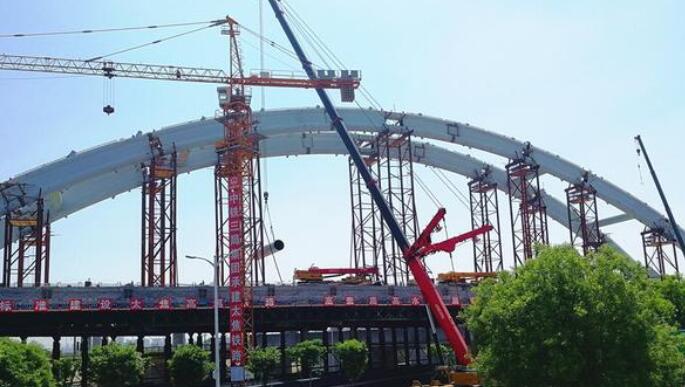 自今年4月10日开始架设第一节钢管拱,历时1个多月的安装、焊接、调试,终于用完美的合龙在碧空中画出了一道优美的“钢构彩虹”,向晋中人民交上了一份满意的答卷。(陈会敏 刘泽汉 陈佰利)