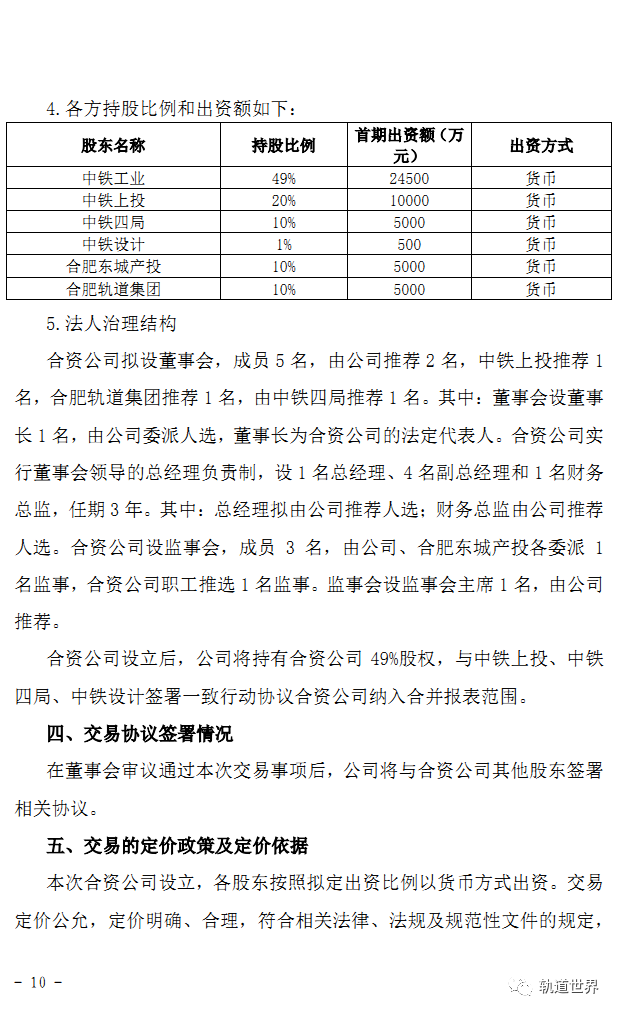 合资公司设立后,公司将持有合资公司49%股权,与中铁上投、中铁四局、中铁设计签署一致行动协议合资公司纳入合并报表范围。
