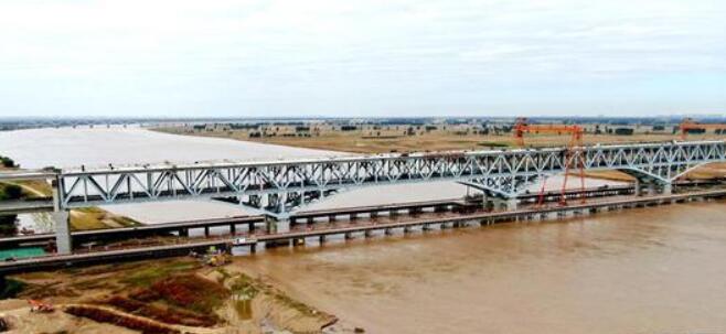 郑济铁路郑州黄河特大桥主桥全长2016米,采用公路、铁路上下层合建的布置形式,设计下层4线铁路、上层6车道快速公路。