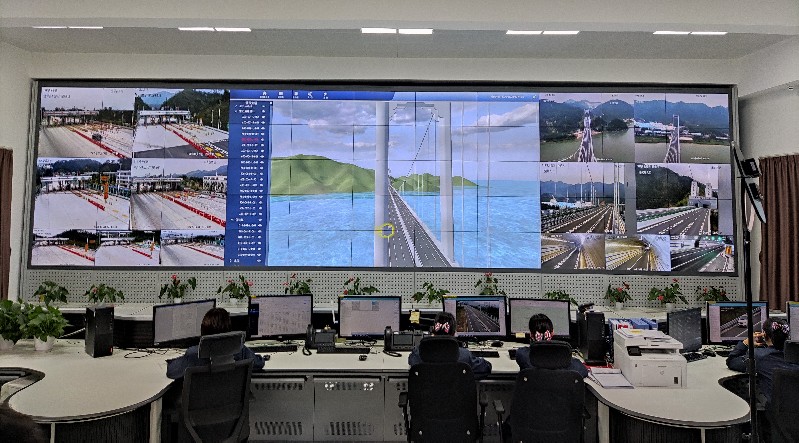 “BIM”就是建筑信息模型的字母简称,大桥建筑3D模型上可实时显示大桥关键结构部位传感器的健康数据,相当于为大桥做“心电图”,工作人员通过监控大屏或电脑随时可以了解大桥实时的健康指数。同时,数据可直接传输到广东交通集团监控系统平台,方便上级单位的统筹管理。