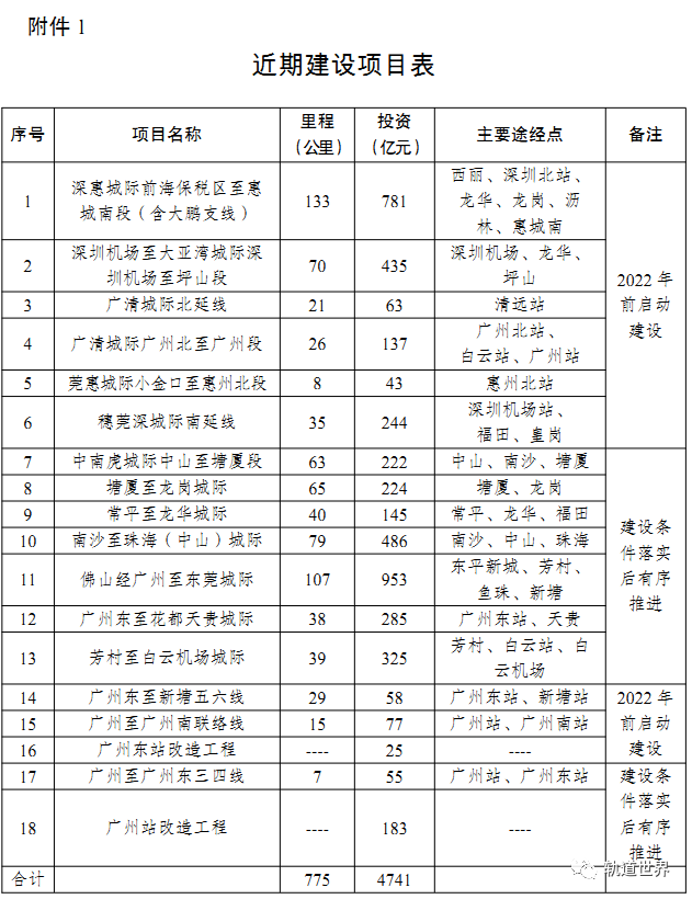 延伸阅读:粤港澳大湾区城际铁路近期建设项目