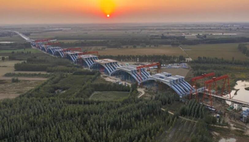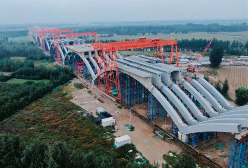 11月25日,京雄高速白沟河特大桥主拱圈顺利合龙,大桥“十七连孔”景观精彩呈现。