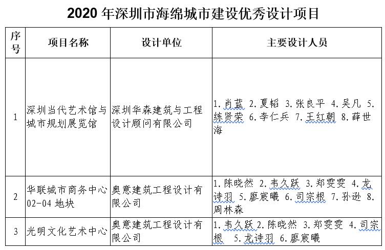 附件:2020年度深圳市海绵城市建设优秀设计项目名单