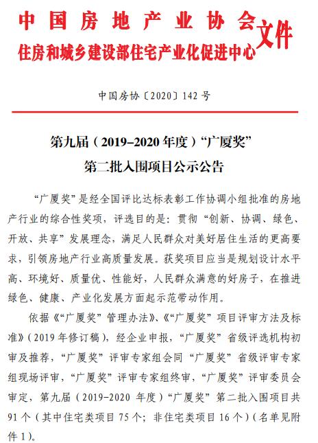 第九届(2019-2020年度)“广厦奖”第二批人围项目公示公告