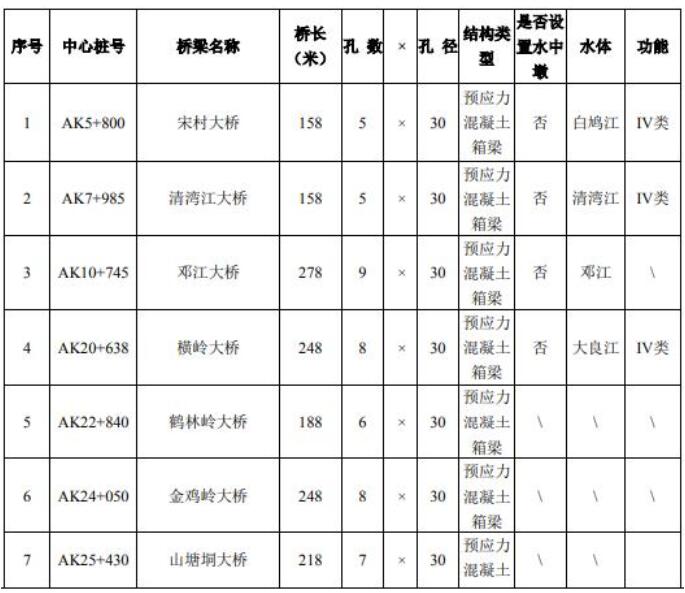 其中,清湾江大桥、邓江大桥为典型桥梁。