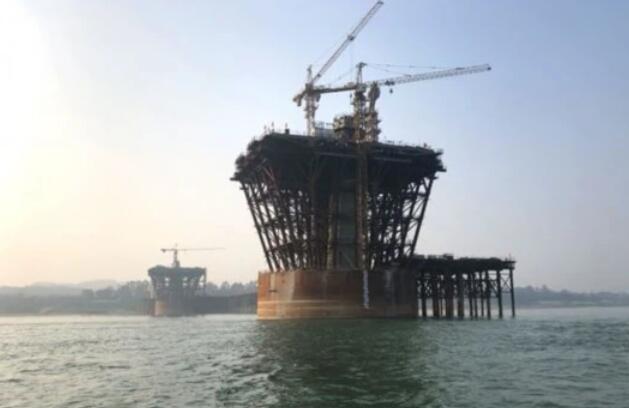 19日上午,记者在泸州长江六桥建设现场看到,长江六桥桥墩宛如巨人一般,耸立在江上。长江六桥也是世界最大钻石型三塔斜拉桥,桥梁全长1722米。