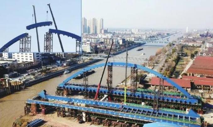 2021年1月20日下午,云阳大桥第一根全钢桥拱拼接完成(资料图)