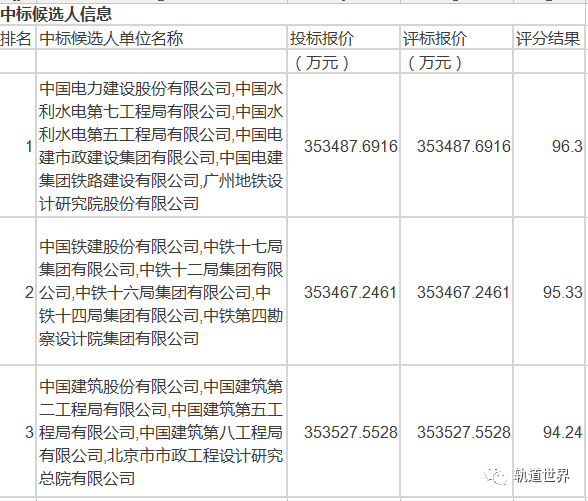 雄安至大兴机场快线项目设计施工总承包中标候选结果