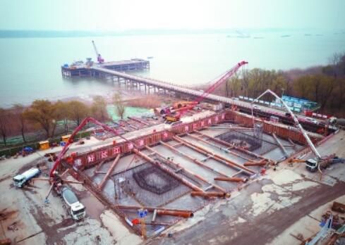 (融媒体记者冯兴通讯员李育峰)3月5日14时,历经近77个小时的连续奋战,仙新路过江通道的施工关键控制点之一——南塔承台第二层混凝土浇筑完成,标志着南主塔承台全部施工完成。南京仙新路过江通道A1标南塔位于河漫滩上,靠近长江岸边,水位变化频繁;索塔为门形混凝土塔,塔高263.8米。