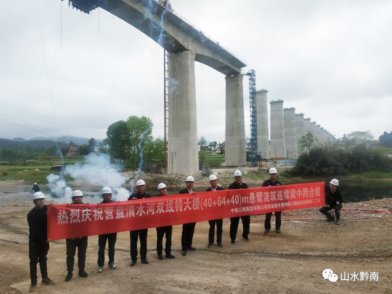 4月4日下午16时,由中铁三局承建的贵南铁路3标段营盘清水河双线特大桥(40+64+40)米连续梁中跨顺利合拢,保障了贵南三标首架通道的畅通,为后续架梁作业奠定了基础,标志着贵南铁路建设取得新突破。
