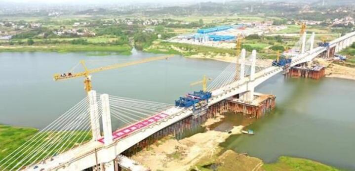 现场负责人李志强介绍,大桥主梁原先设计为23个节段,施工时间约为230天,受疫情、汛期等影响,工期较紧,采用8米大节段悬臂造桥机施工,节段减少为13个,节省有效工期4个月,为国内高速铁路建设中首次应用。