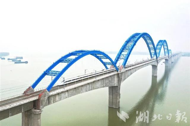 崔家营汉江大桥于2019年11月29日通车,位于湖北襄阳古城外,毗邻文化名山岘山,采用(135+2×300+135)米连续钢构-柔性拱新型组合结构跨越汉江,是汉十高铁全线最关键的控制性工程,成功将高速铁路混凝土梁跨度由200米提升到300米。大桥是世界首座时速350公里、跨度300米的连续钢构拱桥。